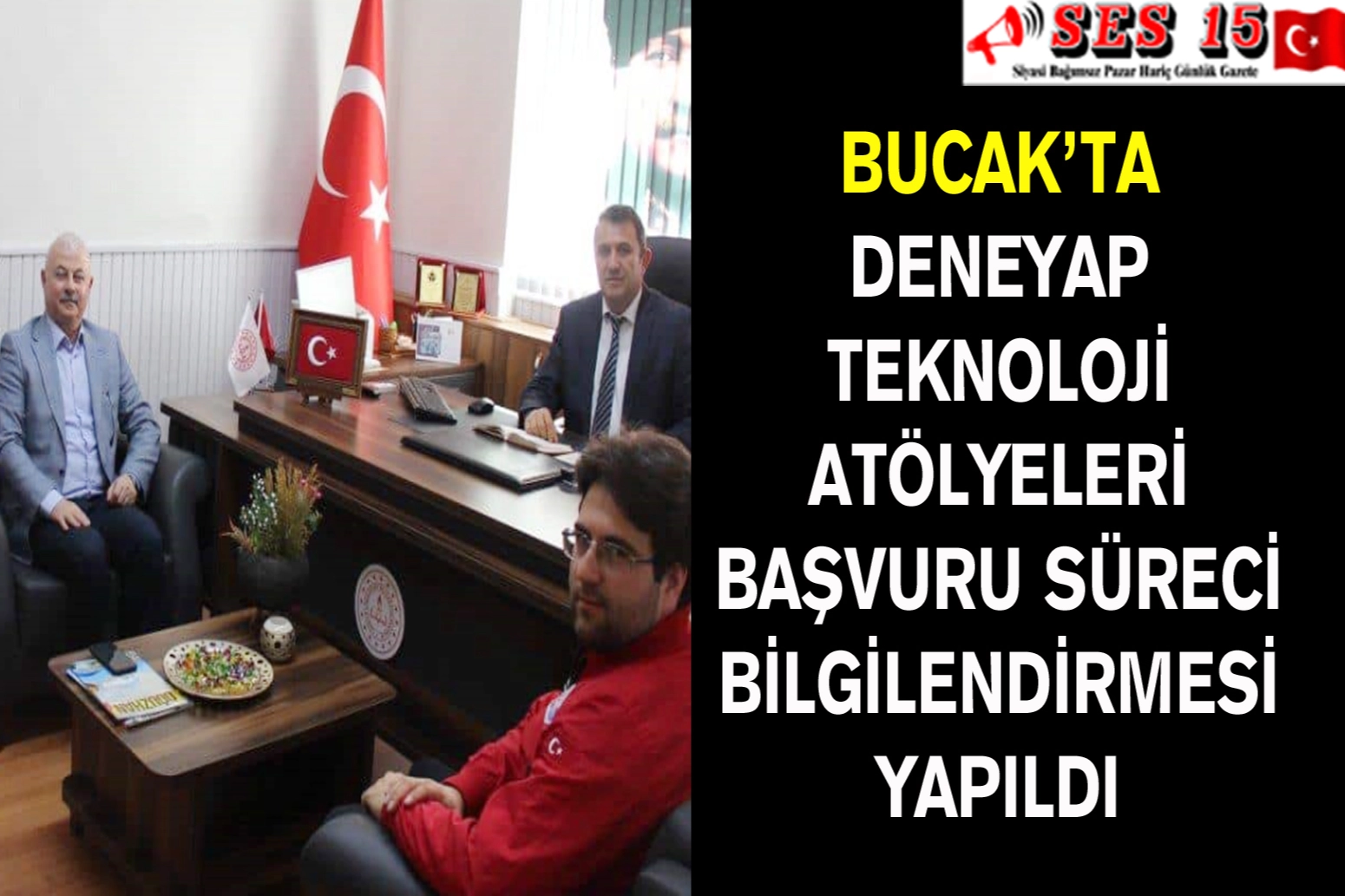 Burdur Bilim, Sanayi ve Teknoloji İl Müdürü Mehmet Yörük ve beraberindekiler Bucak İlçe Milli Eğitim Müdürü Hakan Camcıoğlu' nu ziyaret ederek Deneyap Atölyeleri katılım başvurusu ve e-sınav süreci ile ilgili bilgilendirme yaptı.