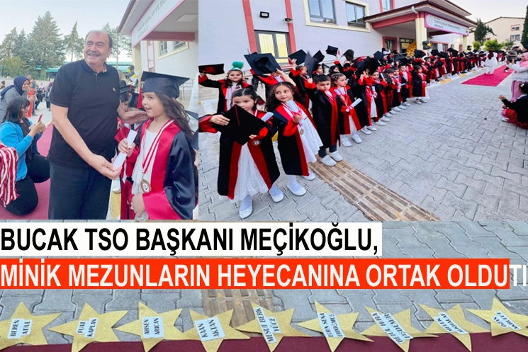 Törende konuşan Başkan Meçikoğlu, “Türkiye Odalar ve Borsalar Birliği tarafından, Bucak Ticaret ve Sanayi Odası'nın girişimleriyle ilçemize kazandırmış olduğumuz Bucak TOBB Anaokulu’nun ilk mezuniyet heyecanını hep birlikte yaşamaktan büyük gurur duyuyoruz.