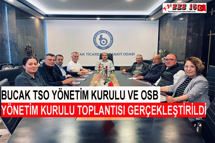 Toplantı Bucak Ticaret ve Sanayi Odası Yönetim Kurulu Başkanı ve aynı zamanda Bucak Organize Sanayi Bölgesi Yönetim Kurulu Başkanı Hasan Yalçın Meçikoğlu’nun Başkanlığında, Yönetim Kurulu Üyelerinin katılımıyla Odası hizmet binasında gerçekleştirildi.