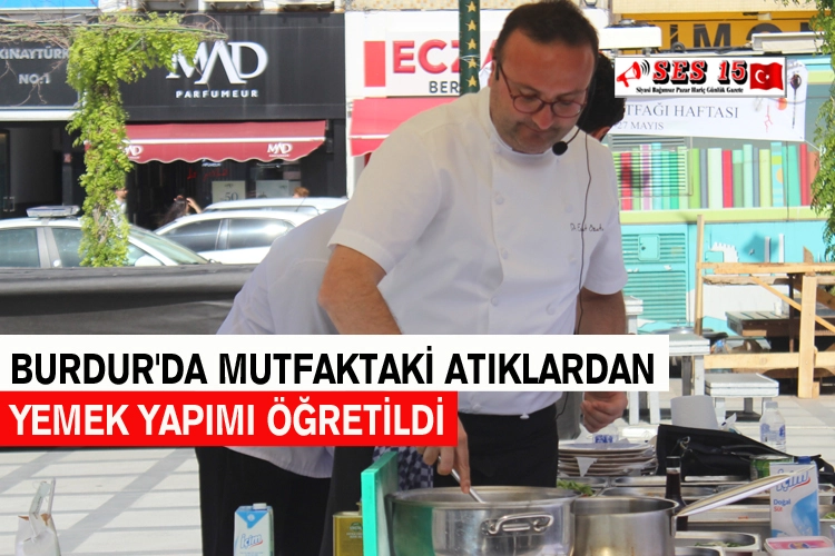 Burdur'da Türk Mutfağı Haftası etkinlikleri kapsamında Şef Esat Özata, mutfaktaki atıklardan yapılan yemekleri öğretti.