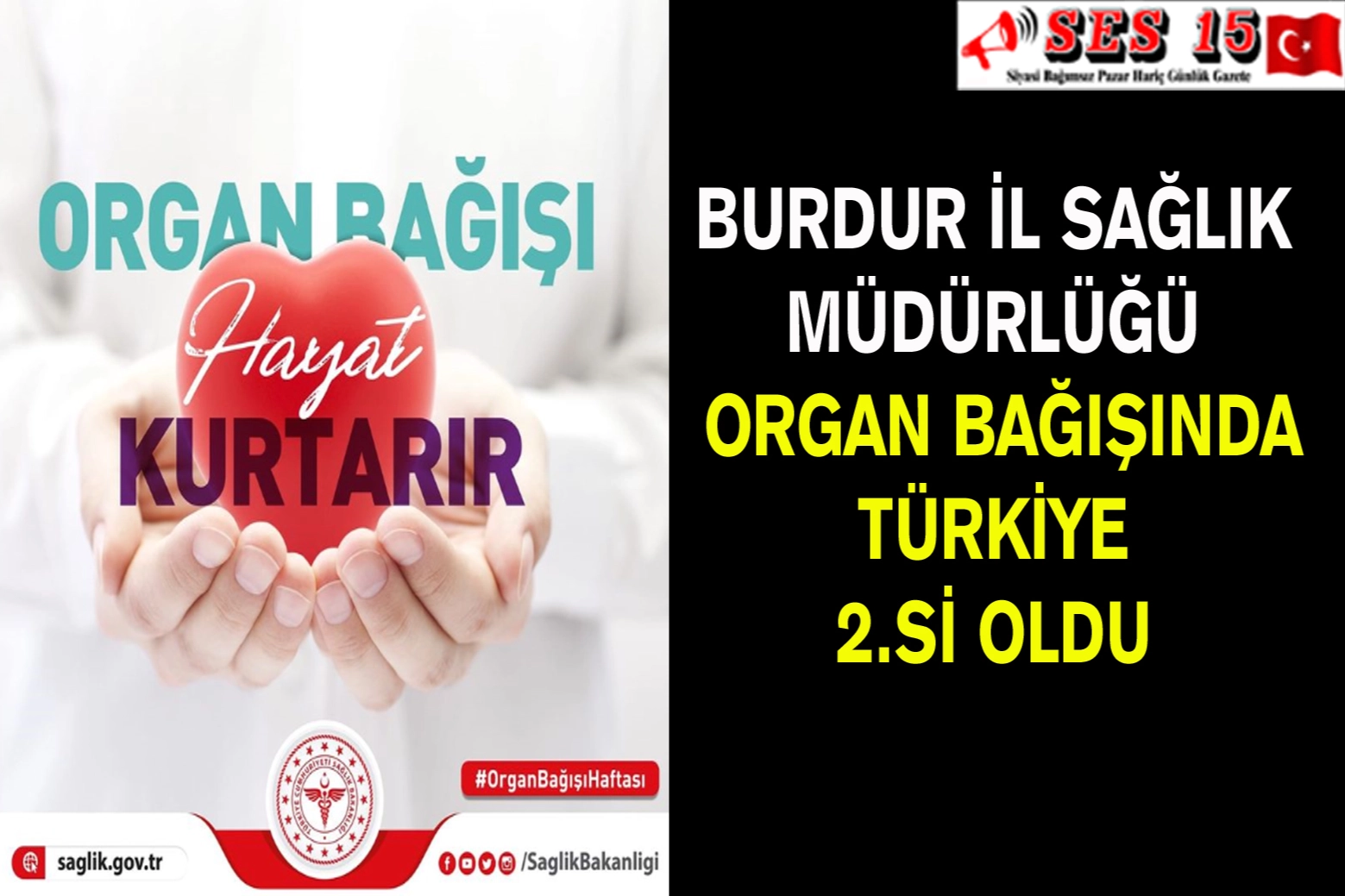 Konuyla ilgili olarak Burdur İl Sağlık Müdürlüğü’nce sosyal medya üzerinden yapılan paylaşımda organ bağışının önemine dikkat çekilerek; İl Sağlık Müdürlüğümüz 2023 yılında nüfusa oranla organ bağışında Türkiye 2. si olmuştur” denildi. Konuyla ilgili yapılan paylaşımda, “Halkımızı bilinçlendirerek, organ bağış sayılarını artırmak ve nakil bekleyen hastalara umut olabilmek amacıyla Sağlık Müdürlüğü olarak organ ve doku bağışı faaliyetleri ile eğitimlerimiz devam etmektedir. İl Sağlık Müdürlüğümüz 2023 yılında nüfusa oranla organ bağışında Türkiye 2. si olmuştur.