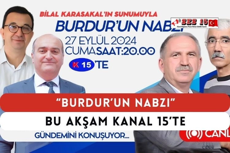 Kanal 15 ekranlarında yayınlanan “Burdur’un Nabzı” programı bu akşam MAKÜ Stüdyosu’ndan canlı olarak ekranlara gelecek. Bilal Karasakal’ın moderatörlüğünü yaptığı programın bu akşamki bölümünde Burdur Gazeteciler Cemiyeti Başkanı Kürşat Tuncel ve Araştırmacı-Gazeteci Cemalettin Bektaş’la Hasan Türkel yer alacak. bu akşam saat 20.00’de MAKÜ Stüdyosu’ndan yayınlanacak olan “Burdur’un Nabzı” programını sakın kaçırmayın.