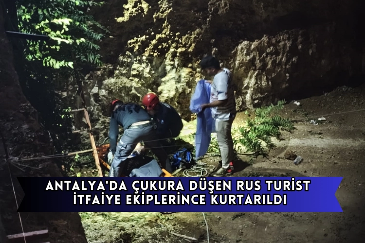 Sağlık görevlileri tarafından yapılan incelemede ayağında kırık olduğu belirlenen turist, itfaiye ekiplerince çukurdan çıkarıldı.