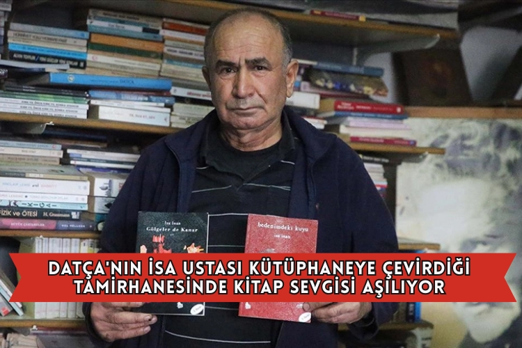 Datça Sanayi Sitesi'ndeki tamirhanesinin bir köşesini kütüphane haline getiren İnan, araçlarını tamire getiren vatandaşlar işlerinin bitmesini beklerken kitap okumasına da fırsat sağlıyor.