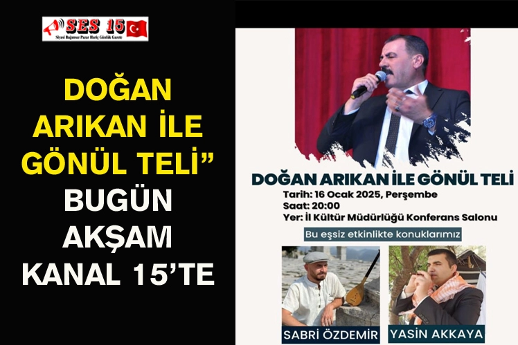 Kanal 15 ekranlarında 15 günde bir Perşembe akşamları yayınlanan “Doğan Arıkan ile Gönül Teli” programı bugün akşam canlı yayınla sizlerle olacak.