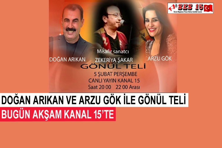 Kanal 15 ekranlarında 15 günde bir Perşembe akşamları yayınlanan “Doğan Arıkan ve Arzu Gök İle Gönül Teli” programı, bugün akşam canlı yayınla sizlerle olacak.