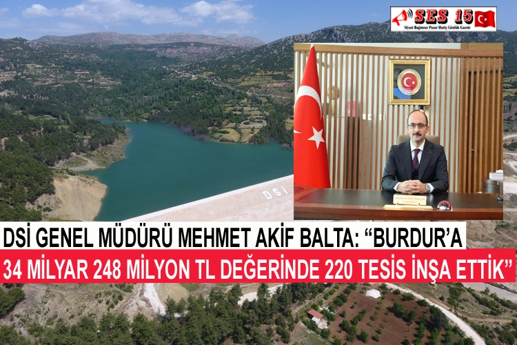 Burdur’a yapmış oldukları DSİ yatırımları hakkında açıklamalarda bulunan DSİ Genel Müdürü Mehmet Akif Balta, “Özellikle modern sulama projelerimiz ülkemiz için son derece önem arz etmektedir. Son 23 yılda Burdur’da inşa ettiğimiz 66 sulama tesisi ile 301 Bin 790 dekar tarımsal araziyi sulamaya açtık ” dedi.