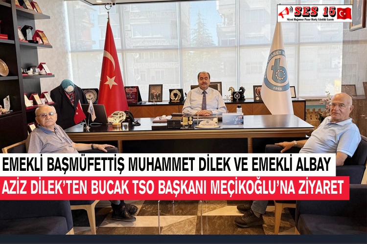Millî Eğitim Bakanlığı Teftiş Kurulu Başkanlığı'ndan emekli Başmüfettiş Muhammet Dilek ve Emekli Albay Aziz Dilek, Bucak Ticaret ve Sanayi Odası Yönetim Kurulu Başkanı Hasan Yalçın Meçikoğlu’nu makamında ziyaret etti.