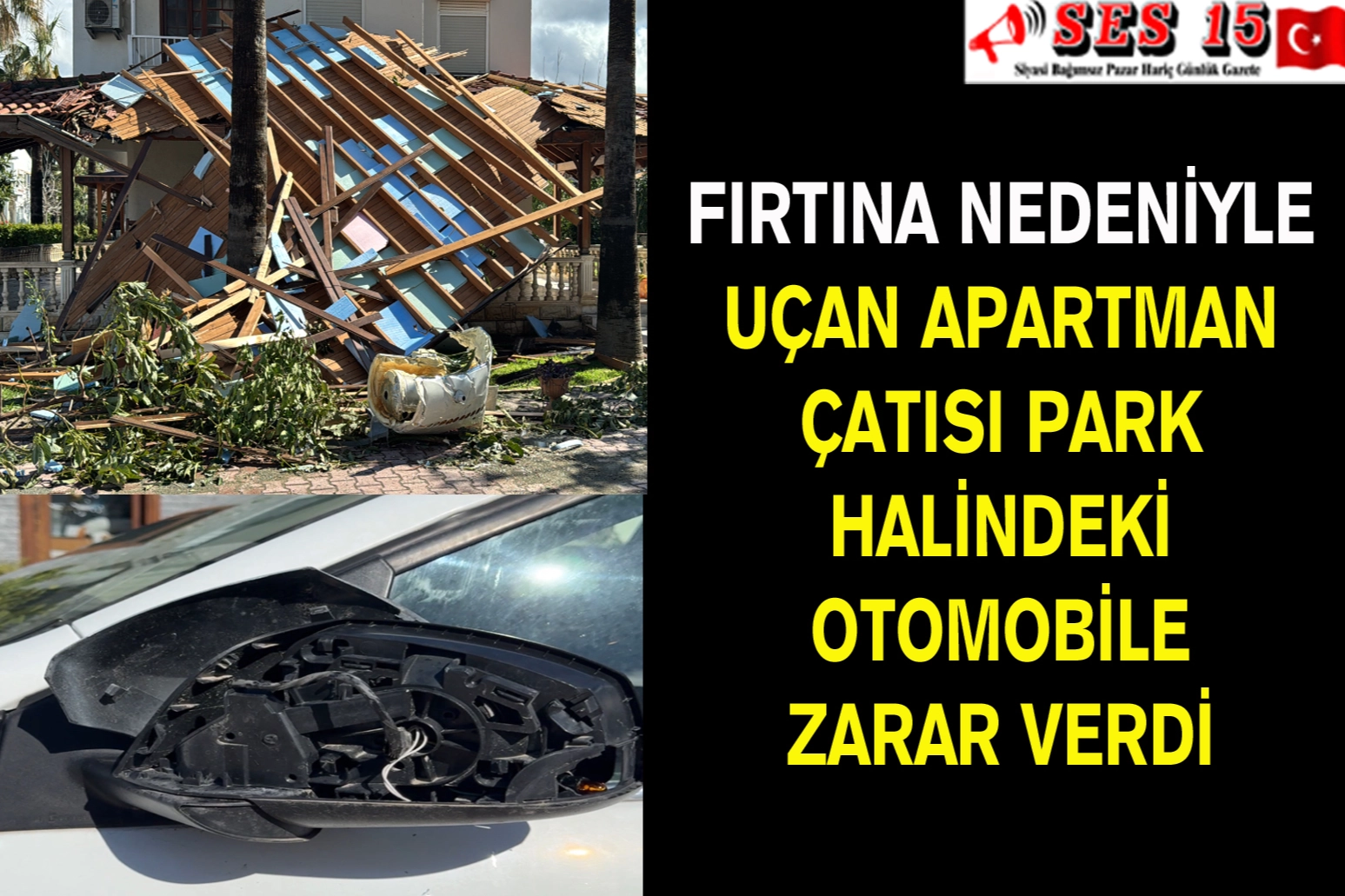 Fırtına nedeniyle bir apartmanın uçan çatısı park halindeki otomobilin üzerine düştü.