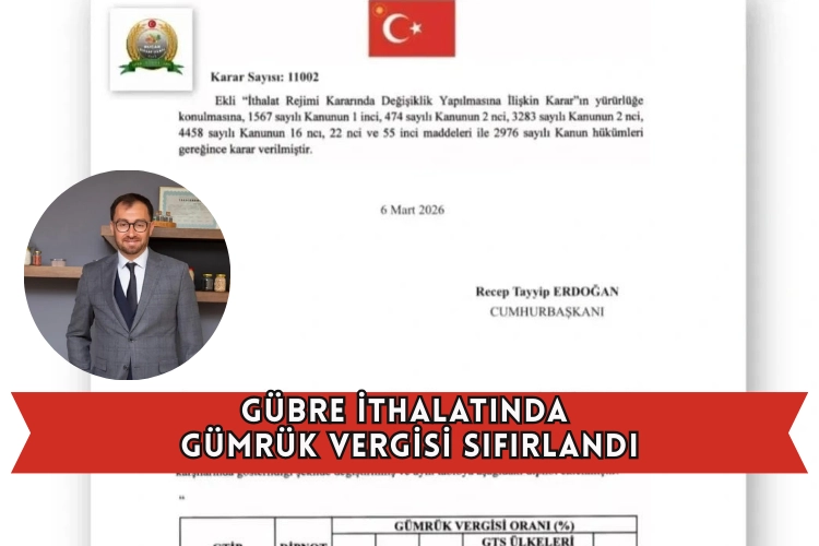 Bucak Ziraat Odası Başkanı Bilal Özel yaptığı açıklamada ''Azotlu gübrelerin hammaddesi olan üre ve üre türevi gübrelerin ithalatında uygulanan %6,5 oranındaki gümrük vergisinin sıfırlanması, tarımsal üretim açısından olumlu ve yerinde bir karar olmuştur.