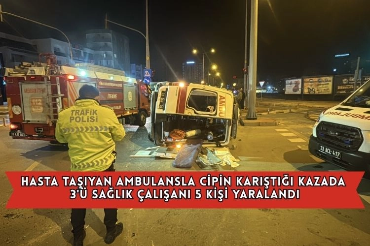 Çarpma sonucu devrilen ambulanstaki sağlık çalışanları K.B, N.B. ve E.K. ile hasta Y.K. ve cip sürücüsü M.B. yaralandı.