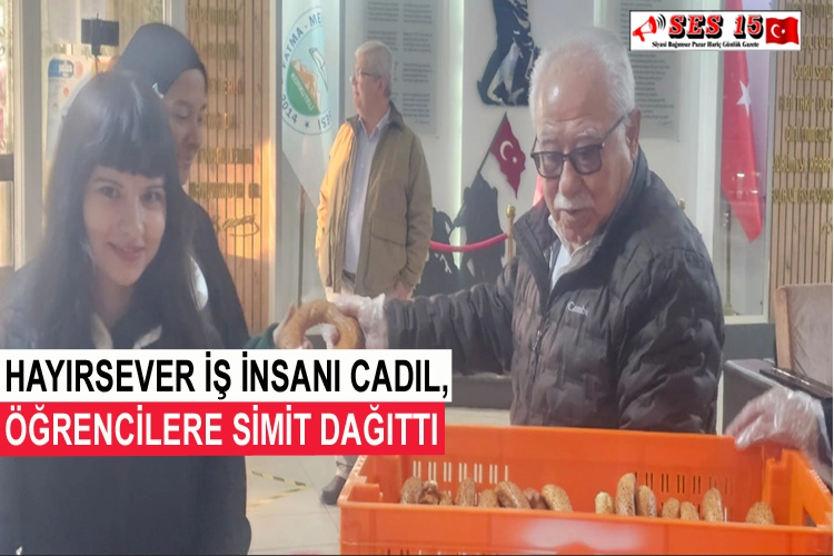 Okul Müdürü Erkan Süha Doğrul tarafından karşılanan İş İnsanı Mehmet Cadıl, öğrencilere simit dağıttı ve öğretmenlerle kahvaltıda buluştu.