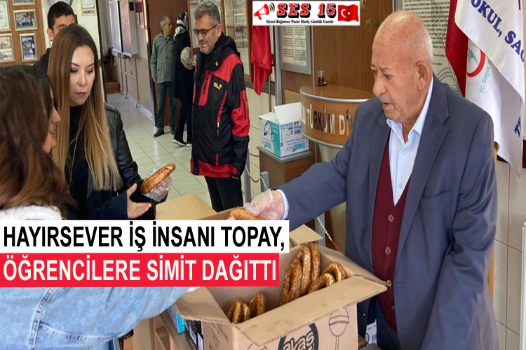Okul Müdürü Mesut Elitok tarafından karşılanan Hayırsever İş İnsanı Necati Topay, öğrencilere simit dağıttı ve öğretmenlerle kahvaltıda bir araya geldi.
