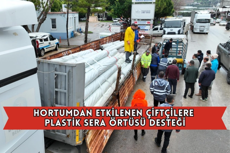 Antalya Büyükşehir Belediyesi tarafından Kumluca'da hortumdan etkilenen çiftçilere plastik sera örtüsü desteği sağlandı.