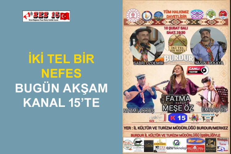 Sürpriz konukların da yer alacağı programda, kültür, tarih, turizm, giyim, gelenek ve görenek ele alınacak olup, türkülerin yanında ağzınızı tatlandıracak çeşitli ikramlar da sizleri bekliyor. Kültür ve Turizm Burdur İl Müdürlüğü’nün işbirliğiyle hazırlanan “İki Tel Bir Nefes” programının özel bölümü, Burdur Kültür Merkezi’nden yayınlanacak. Kanal 15’in yanı sıra, sosyal medya platformu Burdur Tanıtım, Beşkaza’nın Sesi ve Fethiye TV’den de izleyicilere aktarılacak olan program, halka açık olarak gerçekleştirilecek.