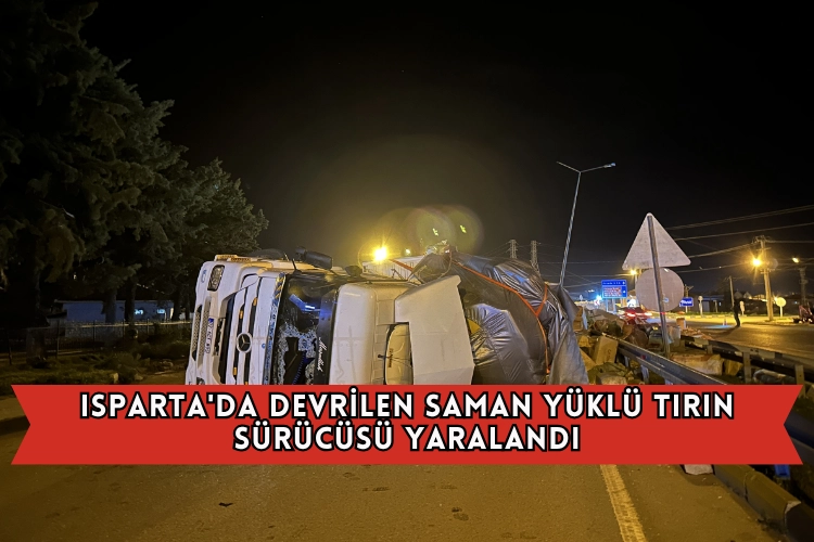 Konya istikametinden Isparta yönüne seyir halinde olan 02 ACY 895 plakalı saman yüklü tır, Köprübaşı mevkisinde devrildi.
