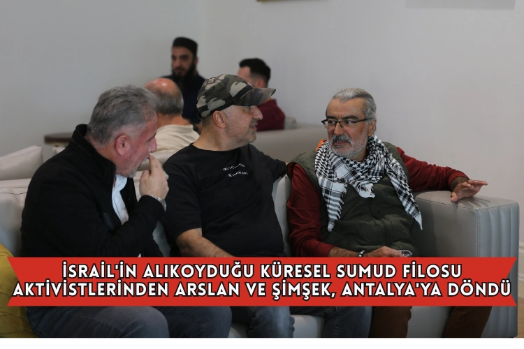 İsrail tarafından uluslararası sularda saldırıya uğrayıp alıkonulan Küresel Sumud Filosu'nda yer alan aktivistlerden Alpaslan Arslan ile Hakan Şimşek, Antalya'ya döndü.