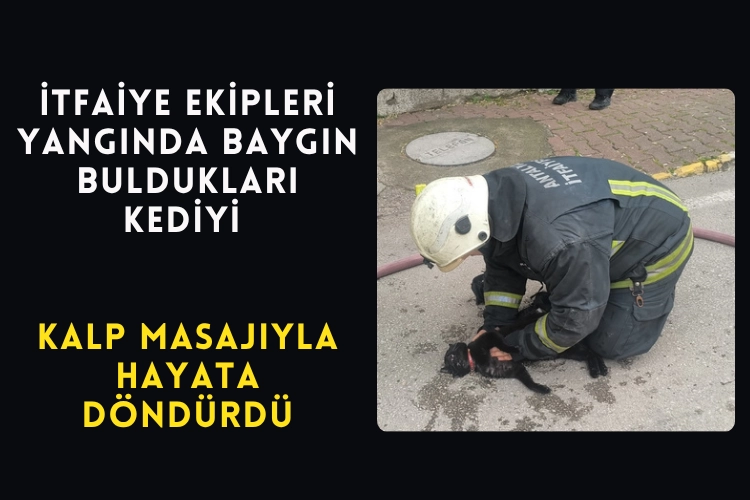 Antalya'nın Muratpaşa ilçesinde itfaiye ekipleri, yangın çıkan evde baygın buldukları kediyi kalp masajı yaparak yaşama bağladı.
