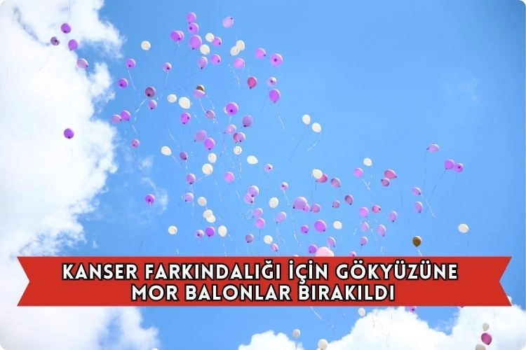 Etkinlikte katılımcılar tarafından gökyüzüne mor balonlar bırakıldı.