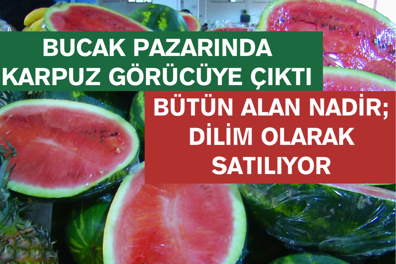 Bucak Pazarında da karpuz tezgahlarda yerini aldı. Pazarcı Mehmet Çetinkaya bütün karpuzu alan kişilerin çok nadir olduğunu belirterek; “Karpuz İran karpuzu. Kilosu 50 TL. Bütün alan çok nadir genelde çeyrek ve yarım alıyorlar.” Dedi.