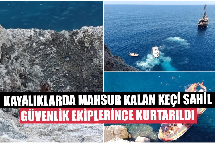 Antalya'nın Alanya ilçesindeki Alanya Kalesi'nde bulunan sarp kayalıklarda mahsur kalan keçiyi, sahil güvenlik ekipleri kurtardı.