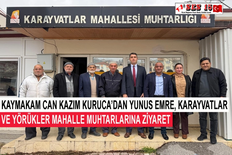 Bu kapsamda Yunus Emre Mahallesi Muhtarı Ayşe Ergin, Karayvatlar Mahallesi Muhtarı Mehmet Ergit, Yörükler Mahallesi Muhtarı Şaban Aksu’yu ziyaret eden Kaymakam Kuruca, Mahalleler hakkında bilgi aldı, sohbet etti.