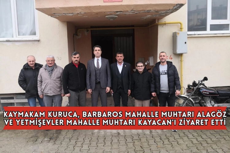 Kaymakam Kuruca, bu kapsamda Bucak Barbaros Mahallesi Muhtarı Mercan Alagöz’ü ve Yetmişevler Mahallesi Muhtarı Fahrettin Kayacan’ı ziyaret etti. Ziyaret sohbet havasında geçti.