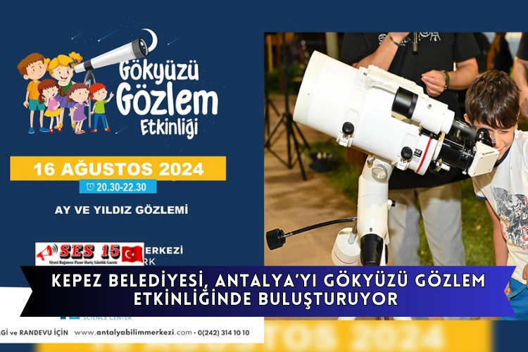 Kepez Belediyesi bünyesinde hizmet veren Antalya Bilim Merkezi, gökyüzü tutkunları için heyecan verici bir etkinliğe hazırlanıyor. Dokuma Park’ta, 16 Ağustos Cuma günü 20.30-22.30 saatleri arasında düzenlenecek etkinlikte, Antalyalılara teleskoplarla Ay ve parlak yıldızları yakından keşfetme fırsatı sunulacak. Katılımcılar, teleskoplarla Ay’ın yüzeyindeki kraterleri, dağları ve diğer detayları daha yakından inceleyebilecek.