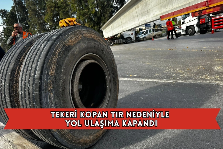 Mersin'in Erdemli ilçesinde beton blok taşıyan tırın arka tekerinin kopması sonucu yol trafiğe kapandı.
