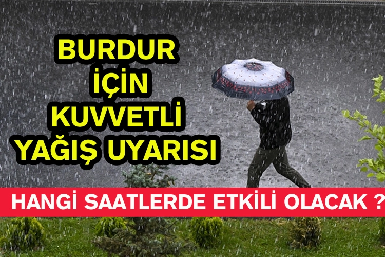 Kuvvetli yağışların bugün 12.00 ile 22.00 saatleri arasında etkili olması tahmin ediliyor. Konuyla ilgili olarak Meteoroloji Bölge Müdürlüğü ve Burdur Valiliği tarafından yapılan uyarıda; “Yapılan son değerlendirmelere göre; bugün Isparta ve Burdur çevrelerinde yerel kuvvetli (21-50 kg/m2) gök gürültülü sağanak yağış bekleniyor. Kuvvetli yağışın sebep olabileceği ani sel, su baskını, yıldırım,, yerel dolu yağışı, ani kuvvetli rüzgar, kısa süreli fırtına, ulaşımda aksamalar gibi olumsuzluklara karşı yetkililerin ve vatandaşların dikkatli ve tedbirli olması gerekmektedir” denildi.