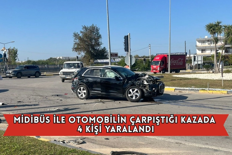 Antalya'nın Serik ilçesinde midibüs ile otomobilin çarpışması sonucu 4 kişi yaralandı.