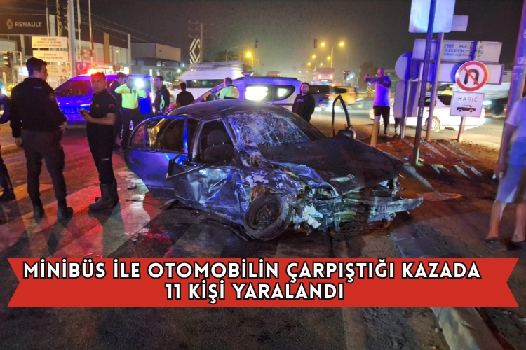 Mersin'in Tarsus ilçesinde minibüs ile otomobilin çarpışması sonucu 11 kişi yaralandı.