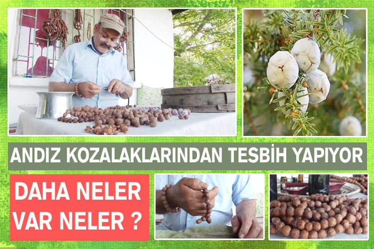 Andız kozalaklarını kırarak pekmez elde ettiğini söyleyen Muhammet Zorlu, sosyal medyada gördüğü paylaşım sonrasında andız tesbihinin yapımına başladığını kaydetti. Zorlu müşterilerin isteğine göre tesbihlerin boyutlarını ayarlayabileceğini belirtti. Muhammet Zorlu, andız kozalağını nasıl tesbih haline getirdiğini anlattı.