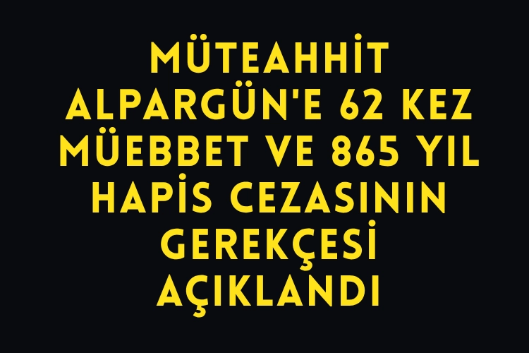 Alpargün Apartmanı'nın 6 Şubat'taki ilk depremde yıkılmasıyla ilgili davanın 30 Ekim'deki karar duruşmasında tutuklu sanık Alpargün'ün, "olası kastla birden fazla kişinin ölümüne ve yaralanmasına neden olma" suçundan 62 kez müebbet ve 865 yıl hapis cezasına çarptırıldığı hükmün 85 sayfalık gerekçesi, Adana 12. Ağır Ceza Mahkemesince yazıldı.