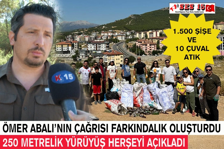 Ömer Abalı’nın çağrısı üzerine bir araya gelen gönüllüler, 250 km’lik orman yolunda yaklaşık 1.500 şişe ve 10 çuval atık topladı.