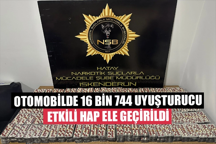 Hatay'ın İskenderun ilçesinde, yeşil reçeteye tabi 16 bin 744 uyuşturucu etkili hap ele geçirilen otomobildeki 2 şüpheli tutuklandı.