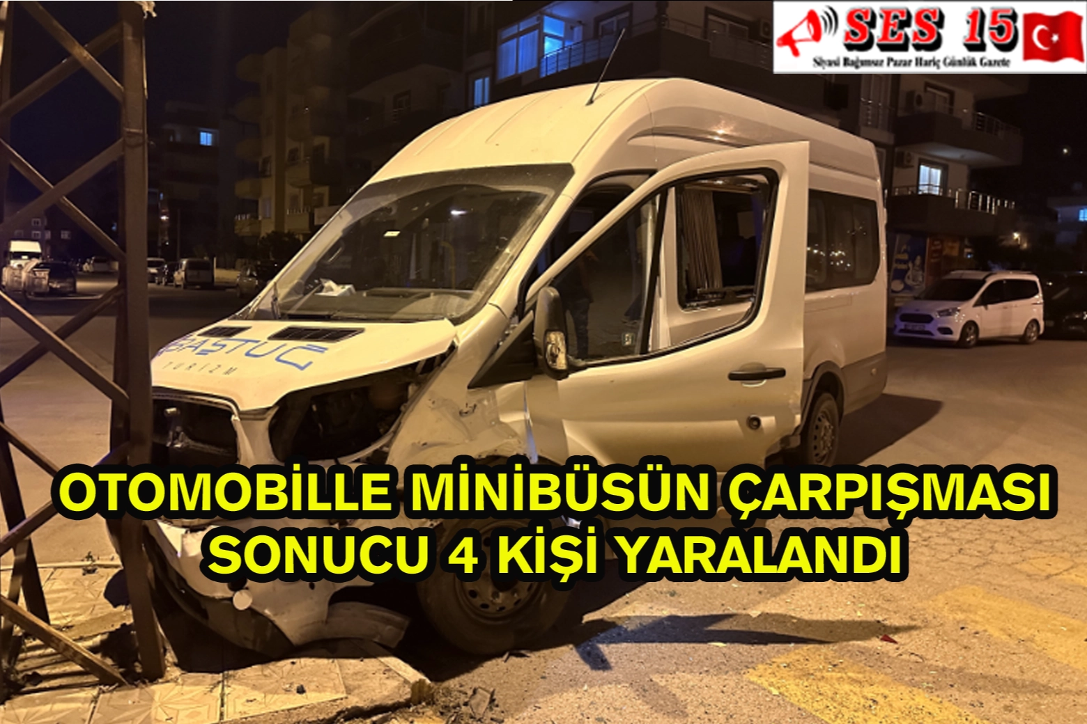 Hatay'ın İskenderun ilçesinde otomobille minibüsün çarpışması sonucu yaralanan 4 kişi hastaneye kaldırıldı.