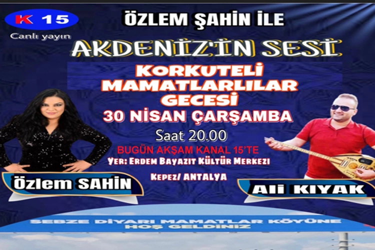Kanal 15 ekranlarında Çarşamba akşamları yayınlanan “Özlem Şahin ile Akdeniz’in Sesi” programı bugün akşam sezon finaliyle sizlerle olacak.