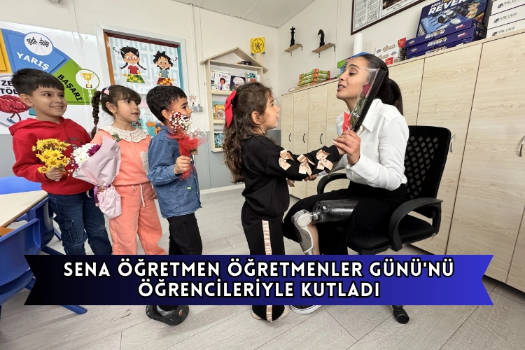 Alkan, protezle gittiği okulunda öğrencileri tarafından Öğretmenler Günü dolayısıyla çiçekle karşılanmanın sevincini yaşadı.