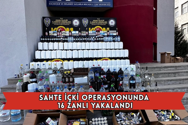 Adana'da sahte içki üreten ve satışını yapanlara yönelik operasyonda 16 şüpheli gözaltına alındı.