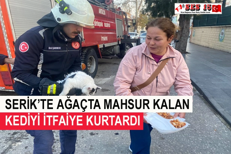 Ağaca baktığında bir kedinin ağaçta mahsur kaldığını gören Yılmaz durumu itfaiyeye bildirdi.