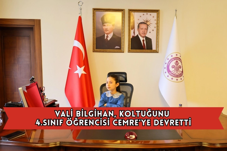 Burdur Valisi Tülay Baydar Bilgihan, 23 Nisan Ulusal Egemenlik ve Çocuk Bayramı münasebetiyle; koltuğunu 4. sınıf öğrencileri Cemre Potak’a devretti