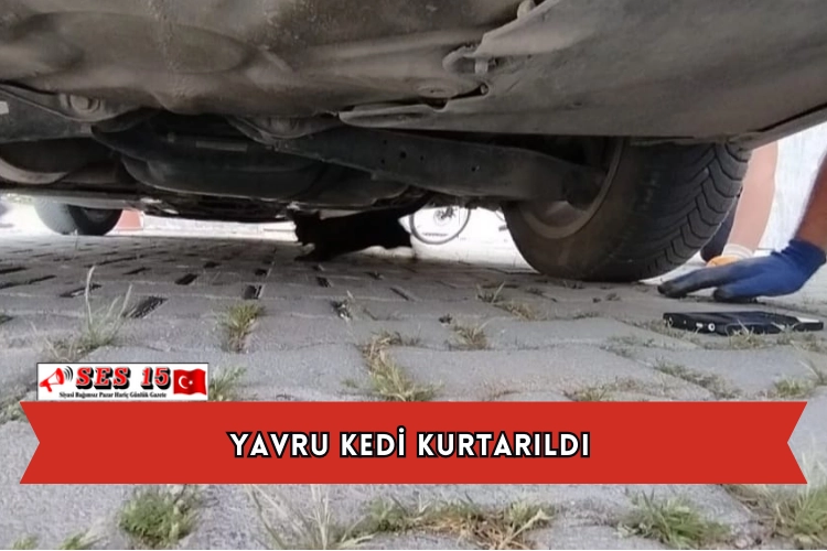 Otomobilin motorunda sıkıştığını gören itfaiye ekipleri yavru kediyi kurtarmak için çalışma başlattı.