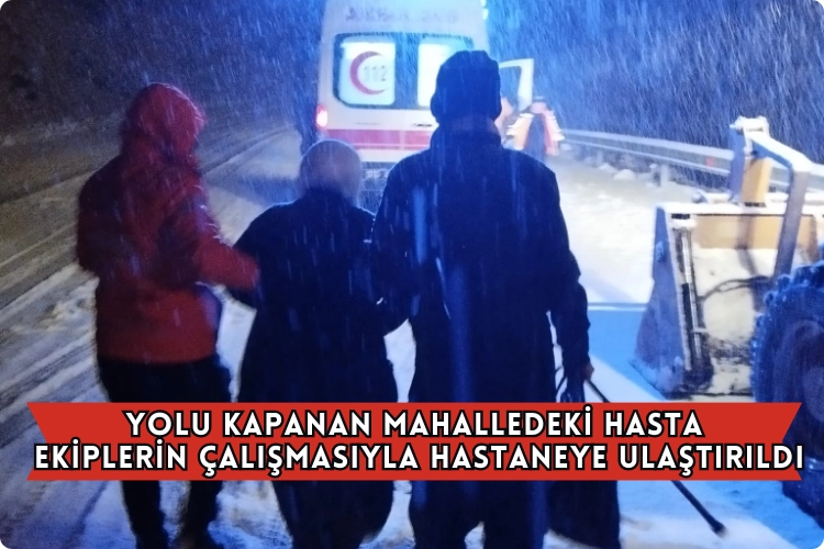 Sağlık ekibi, kar nedeniyle kapanan yolda adrese ulaşamayınca bölgeye Büyükşehir Belediyesi ekipleri yönlendirildi.