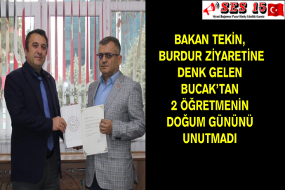 Milli Eğitim Bakanı Yusuf Tekin'in Burdur ziyaretleri kapsamında o gün doğum günü olan Necati Topay Mesleki ve Teknik Anadolu Lisesi Matematik Öğretmeni Mustafa Gökalp ve 15 Temmuz Şehitler Ortaokulu Okulöncesi Öğretmeni Esin Çelik'e Bakan tarafından gönderilen tebrik mesajları ve hediyeleri Bucak İlçe Milli Eğitim Müdürü Hakan Camcıoğlu tarafından kendilerine verildi.