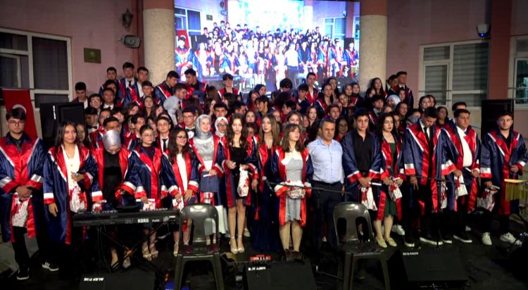 Saygı duruşunda bulunulması ve İstiklal Marşı’nın okunmasıyla başlayan törende konuşan Okul Müdürü Hüseyin Kahraman, mezun olan öğrencilere gelecek hayatlarında başarılar diledi.