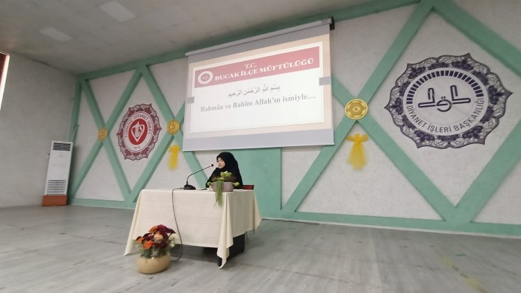 Bucak İlçe Müftülüğü Aile ve Dini Rehberlik Bürosunca Aile Haftası kapsamında bayanlara yönelik "Aile" konulu konferans düzenlendi.