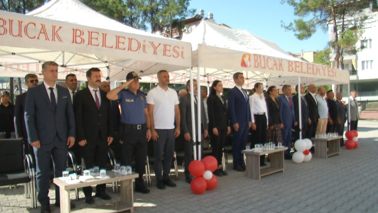 Bucak Oğuzhan İlkokulu’nda bugün saat 09.30’da düzenlenen programa, Bucak Kaymakamı Can Kazım Kuruca ve eşi Eda Kuruca, Bucak Belediye Başkanı Hülya Gümüş, İlçe Emniyet Müdürü Nail Çelik, İlçe Milli Eğitim Müdürü Bekir Canavar, AK Parti Bucak İlçe Başkanı Osman Taşkın, öğretmenler öğrenciler ve veliler katıldı.