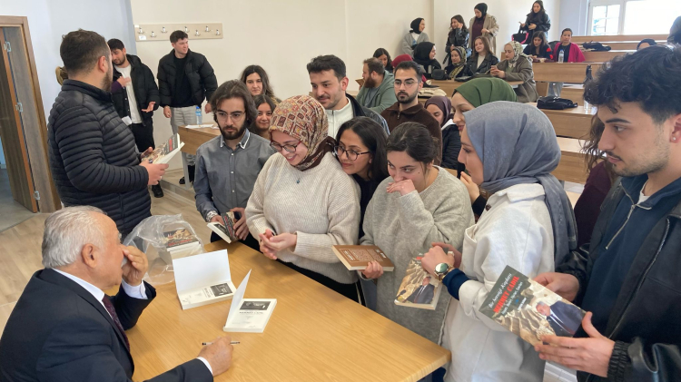 Öğrencilerin sorularını da yanıtlayan İş İnsanı Cadıl, “Bir Sanayi Kaplanı Mehmet Cadıl” adlı kitabını imzaladı.