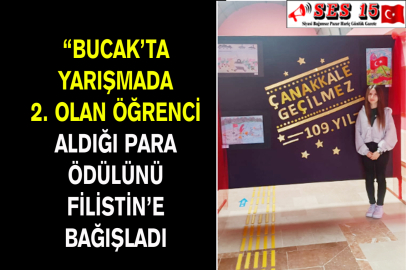 Bucak Akdeniz Mesleki Teknik ve Anadolu Lisesi öğrencisi Saniye Ceylin İnal “Çanakkale Ruhu” temalı yarışmada 2. Oldu. Öğrenci aldığı para ödülünü Filistin’de zulüm gören Müslümanlara bağışladı.